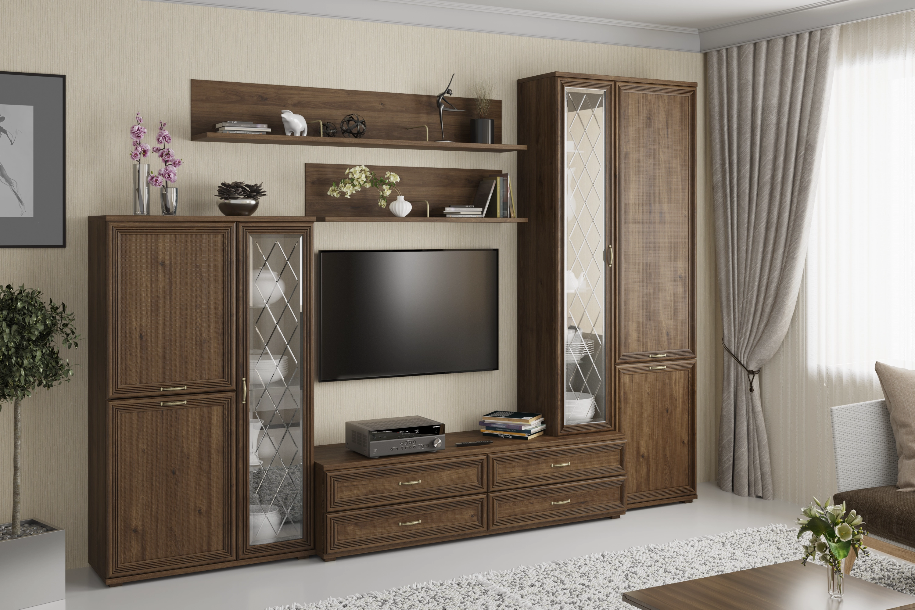 Коллекция включает в себя более 70-ти оригинальных модулей, созданная с их помощью композиция отлично впишется в любое помещение. Программа «Карина» позволит создать уют и гармонию в гостиной.