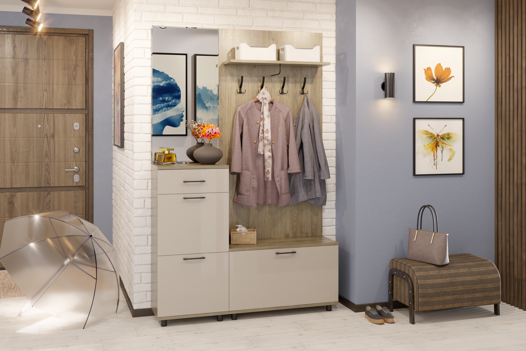 Модульная программа мебели для прихожих «Грэйс» представляет собой набор отдельных, самостоятельных секций, стилистически и функционально сочетающихся между собой: тумбы, комоды, зеркала, полки, антресоли и вместительная шкафная группа.
