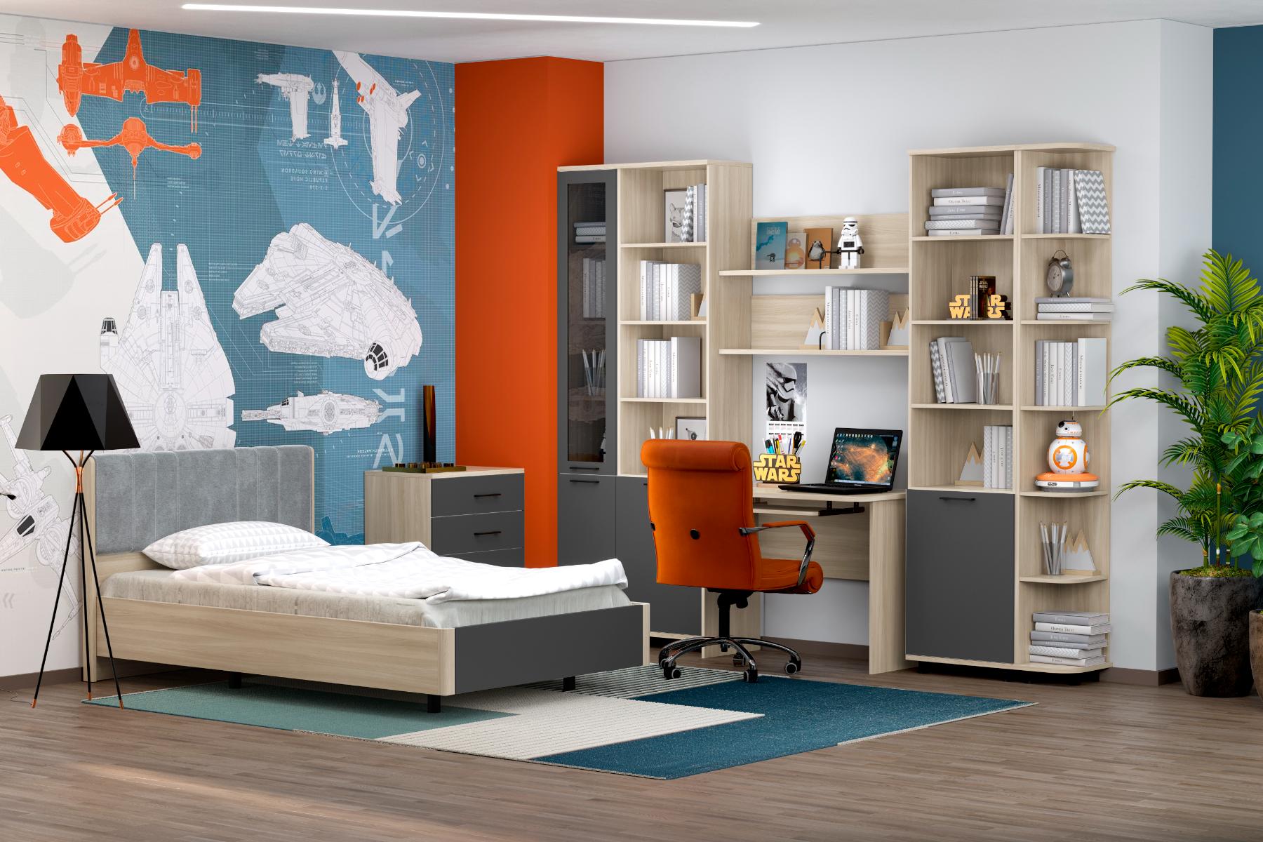 корпус Ясень Асахи, фасад Антрацит Матовый (ШК-5002-АС-АМ);