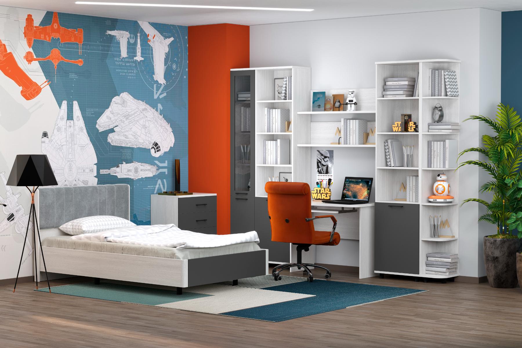 корпус Снежный Ясень, фасад Антрацит Матовый (ШК-5002-СЯ-АМ).