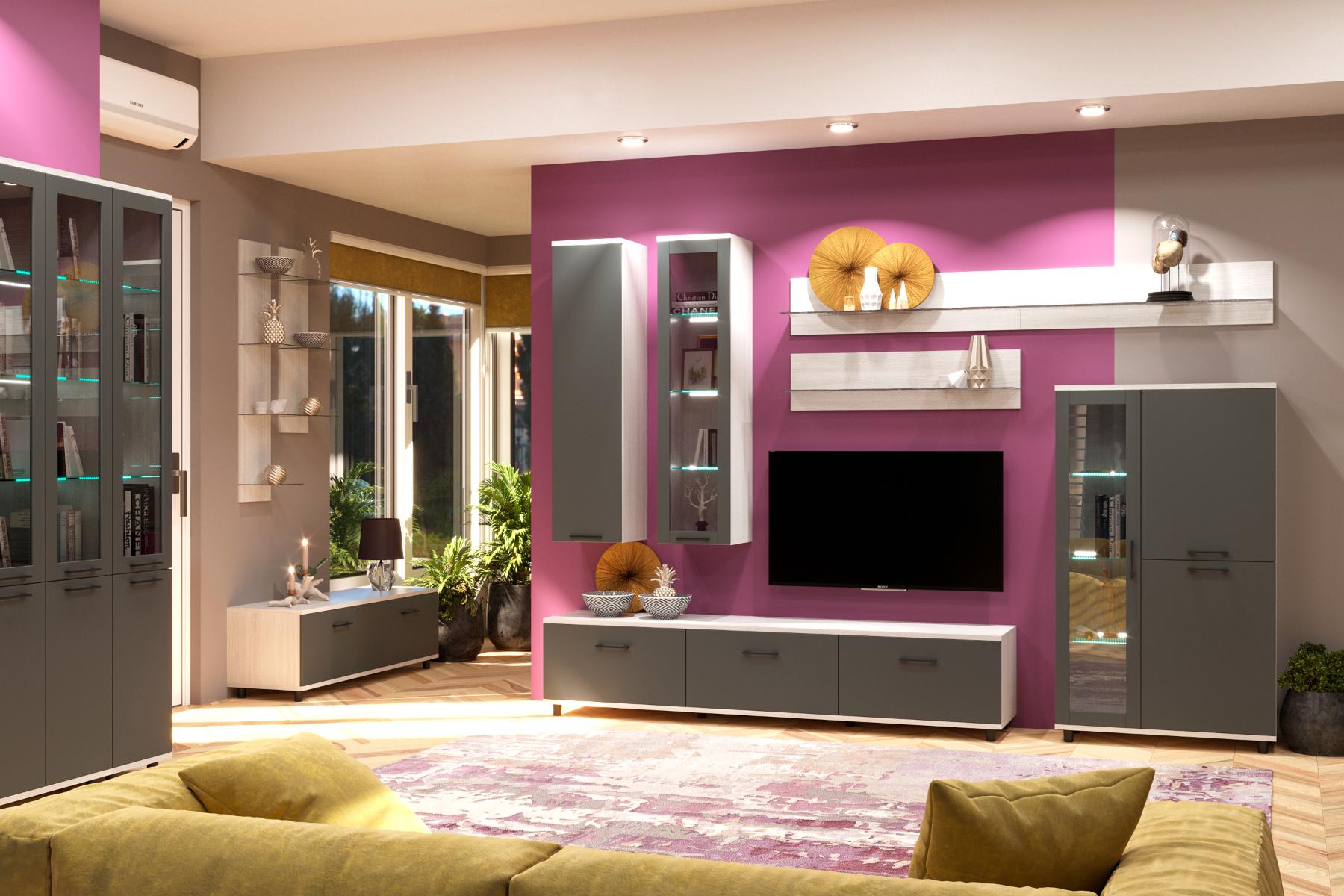 Коллекция мебели для гостиной «Грэйс» предлагает широкий выбор модулей, стилистически и функционально сочетающихся между собой.