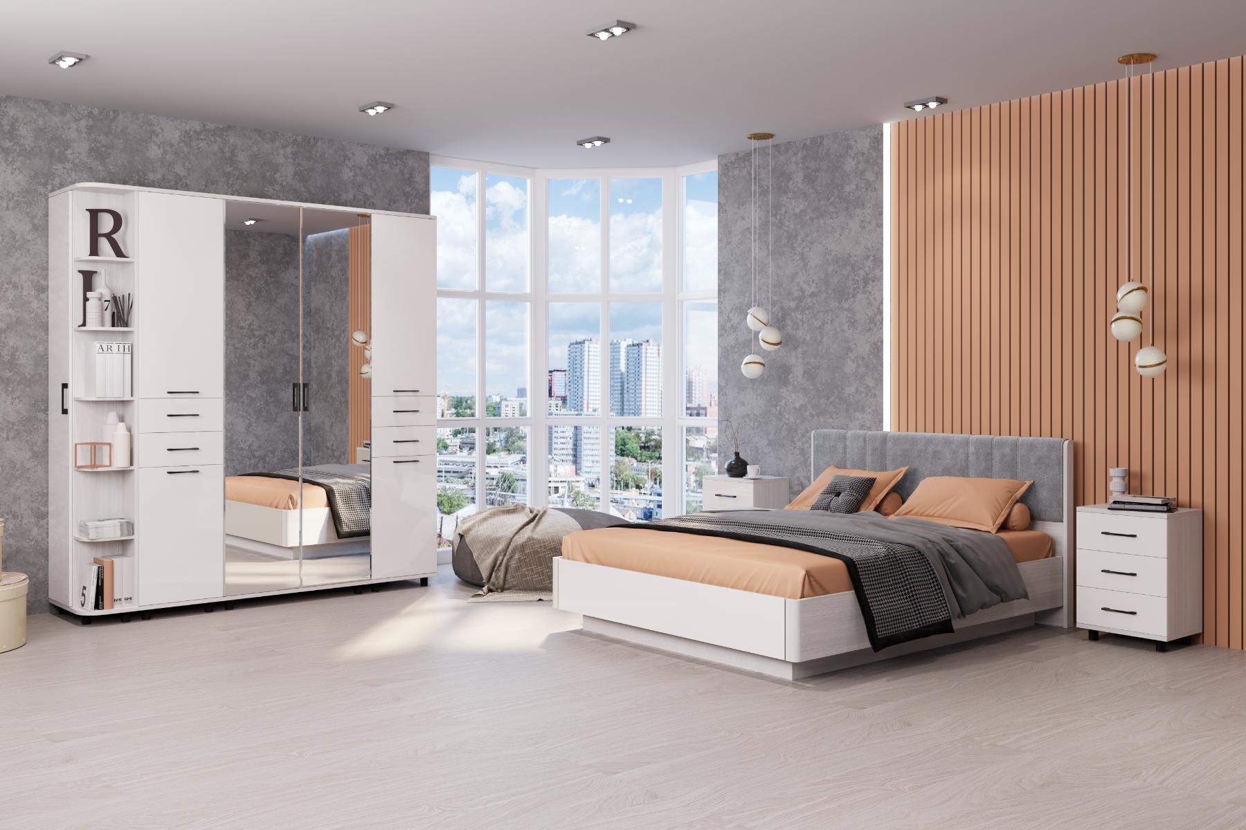 Модульная программа мебели для спальни «Грэйс» представляет собой набор отдельных, самостоятельных секций, стилистически и функционально сочетающихся между собой: тумбы, комоды, вместительная шкафная группа, продуманные до мелочей кровати с надежными системами подъемного механизма и дополнительным местом хранения.